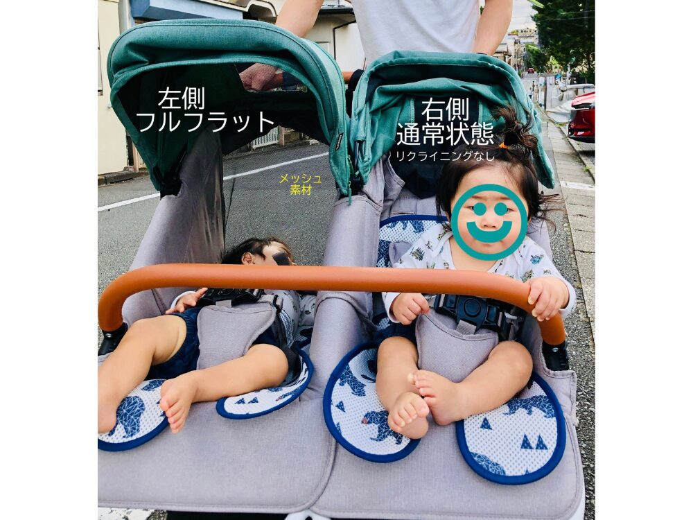A. 新生児(生後0日)から5〜6歳頃まで使えます。各シートの耐荷重は22kgで、5〜6歳頃が目安です。我が家は現在5歳・体重17kg×2名の双子が今も毎日乗っています。(おそらく最長クラスです笑)