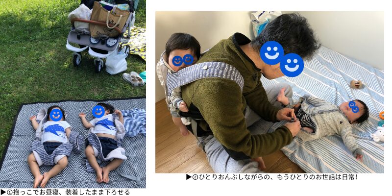 特に重宝したのは、ワンオペ中の「ダブル抱っこ」。