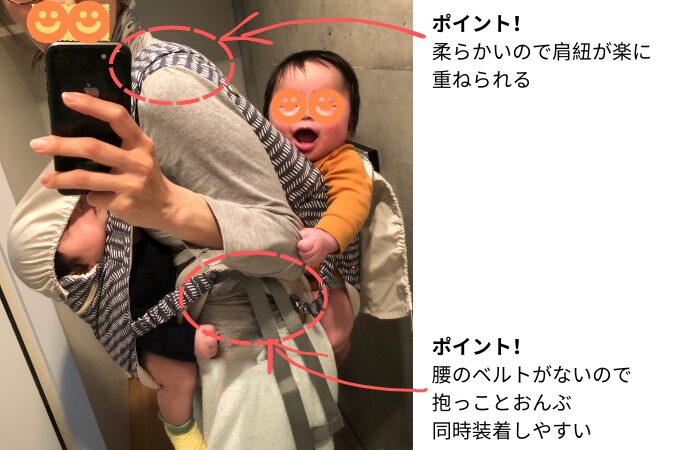 - 気軽にダブル抱っこができる:柔らかいので、重ね付けできる!