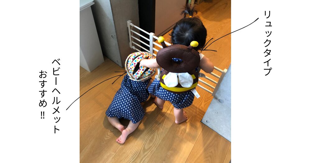 ちなみに、リュック型タイプも試しましたが、リュックタイプは後頭部以外は守れず、我が家のやんちゃな双子にはあまり役目を果たしてくれず、結果的に全方位タイプが断然安心でした!